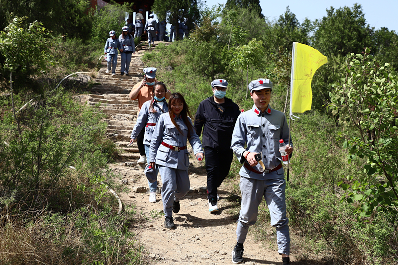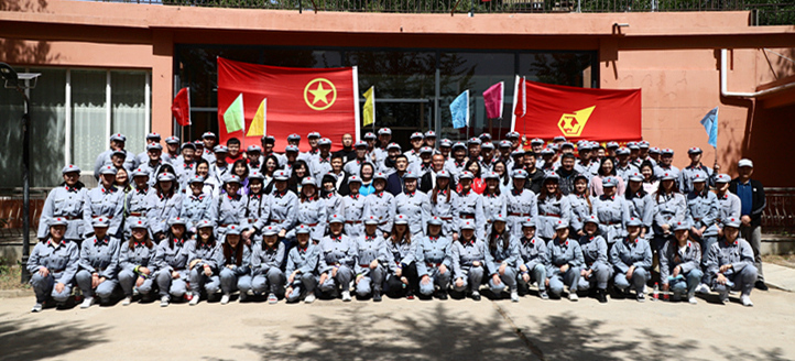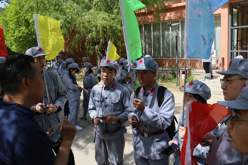 活動(dòng)開(kāi)始前,大家進(jìn)行了簡(jiǎn)單的破冰環(huán)節后被隨機分為8組,并紛紛換上了紅軍長(cháng)征時(shí)的軍裝,開(kāi)始了“紅色趣味運動(dòng)會(huì )”。各組在隨后的推獨輪車(chē)、抬擔架、扛木樁等任務(wù)中奮力拼搏、團結協(xié)作,為下午的“重走長(cháng)征路”任務(wù)培養了深厚默契。