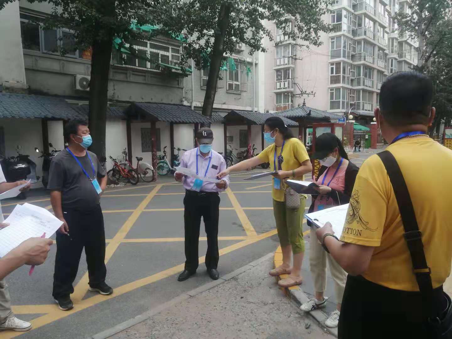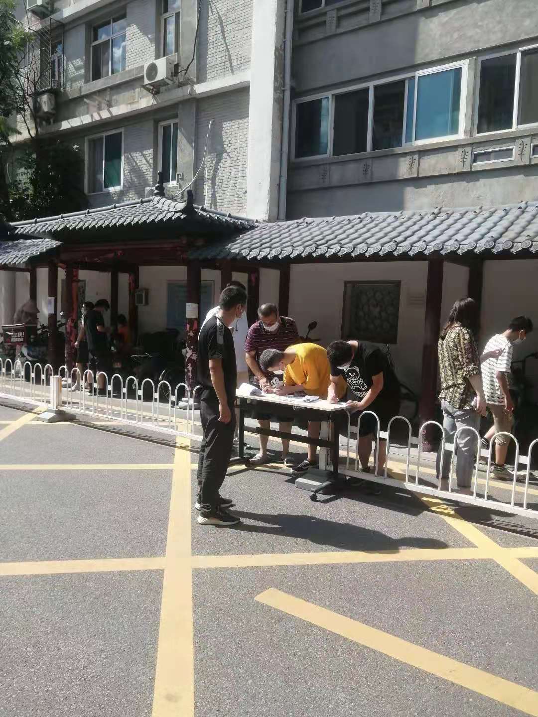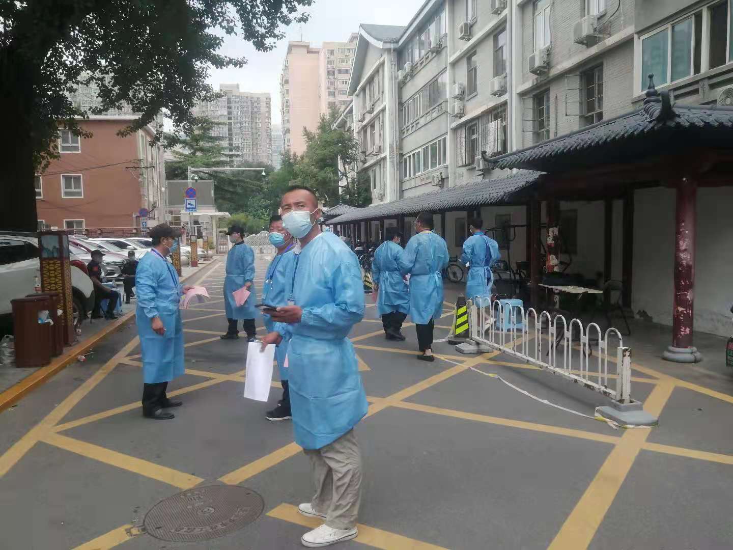 8月2日海淀區甘家口國興家園小區出現1例新冠肺炎確診病例的消息引起了房修一建筑所屬北京世紀美嘉物業(yè)管理有限公司的高度重視。世紀美嘉德外項目部管理的新苑街10號院與國興家園只有一墻之隔,車(chē)公莊西路7號院距離國興家園也只有幾百米的距離,這兩個(gè)小區都在甘家口街道要求實(shí)施封閉管理的范圍內。世紀美嘉公司要求項目部要全力支持配合街道、社區的工作,提醒職工做好個(gè)人防護。項目經(jīng)理同社區主任、工作人員保持實(shí)時(shí)聯(lián)系,及時(shí)進(jìn)行溝通,隨時(shí)聽(tīng)候社區的工作安排。按照社區要求,當天下午項目經(jīng)理賈連海帶隊,組織了一支臨時(shí)防疫小組,在社區工作人員的指導下迅速開(kāi)展起了各項工作。下午2點(diǎn)驕陽(yáng)似火,物業(yè)人員在現場(chǎng)維護核酸檢測隊伍秩序、在小區門(mén)口值守攔截出入人員、代居民收送快遞,每個(gè)人都汗流浹背,但沒(méi)有一個(gè)人喊累、喊苦的。面對不聽(tīng)勸阻執意要出小區的人員,還要耐心細致的為其做工作,勸導他們要按照政府要求,配合小區封閉管理,只有這樣才能有效控制疫情的傳播,保證大家的安全。在社區、物業(yè)的共同努力下,截止到下午6點(diǎn)完成了世紀美嘉所轄兩個(gè)院落全部住戶(hù)的核酸檢測工作。