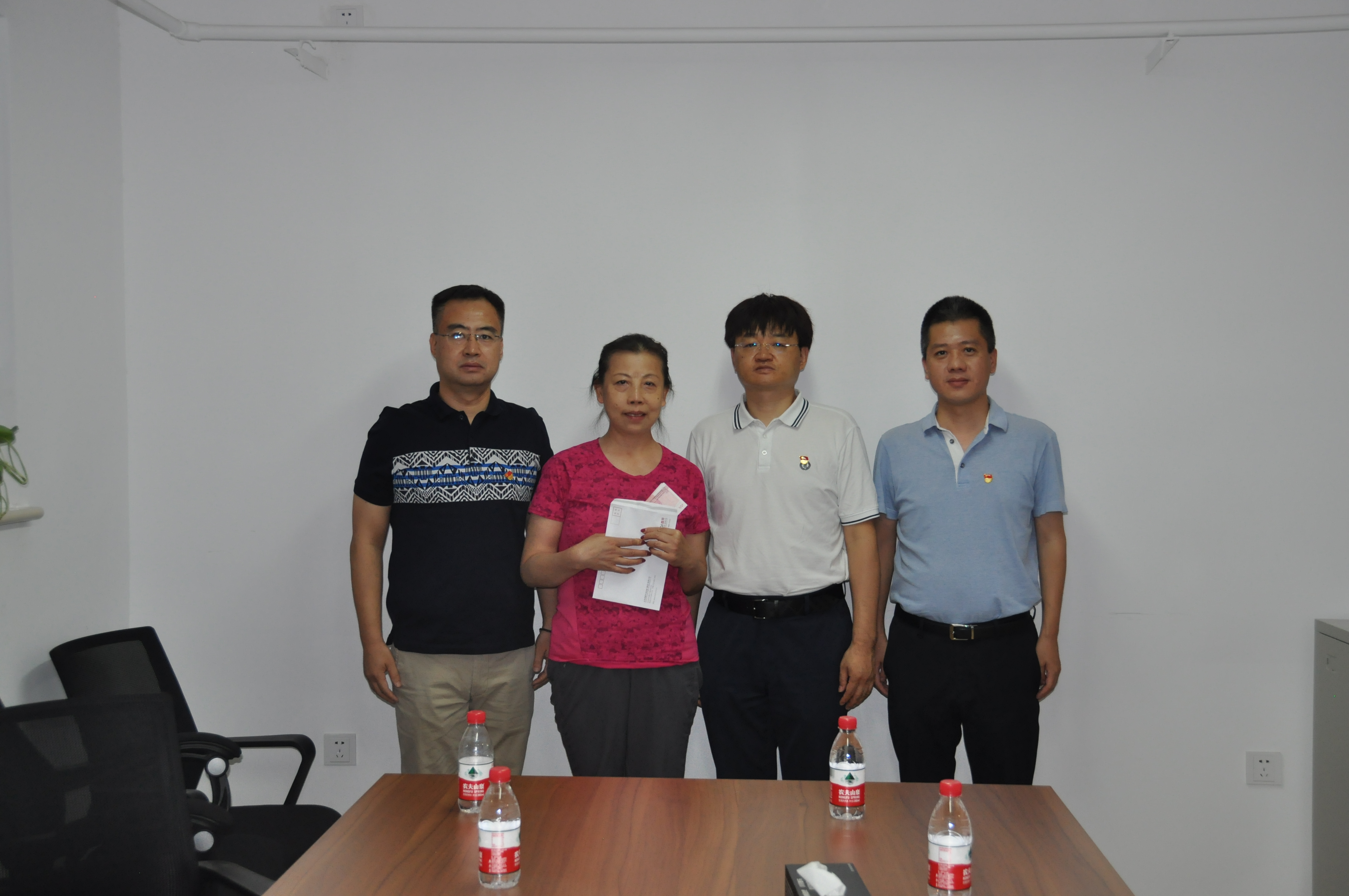 2019年6月25日上午,首開(kāi)集團黨委常委、財務(wù)總監秘勇同志赴北京房修一物業(yè)管理有限公司慰問(wèn)困難黨員賈澗清,公司黨委書(shū)記、董事長(cháng)井洪濤同志,北京房修一物業(yè)管理有限公司黨總支書(shū)記、總經(jīng)理林長(cháng)軍陪同慰問(wèn)。秘勇同志代表首開(kāi)集團向賈澗清同志表達了慰問(wèn)并發(fā)放了困難黨員慰問(wèn)金。隨后,秘勇同志、井洪濤同志與賈澗清同志進(jìn)行了親切交談,了解了她的生活、工作情況以及病情,并鼓勵賈澗清同志積極養病,樂(lè )觀(guān)對待工作和生活,希望賈澗清同志無(wú)論遇到什么困難,可以向黨組織訴說(shuō),兩級黨組織都會(huì )盡力幫助解決。
