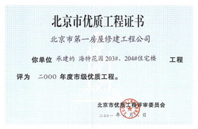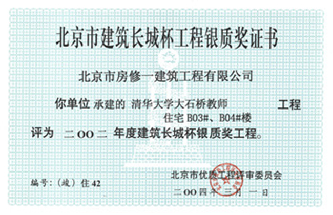 北京市建筑長(cháng)城杯工程金質(zhì)獎